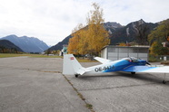 Ein toller Anflug, wir kommen vom Norden in das Tal, fliegen, fast wie bei uns, Hochspannungsleitungen entlang, dann südlich der Festung Rosskopf vorbei, Umfliegen die Ortschaften im Lechtal und da isses, das Finale 04, okay, die Halle ist doch recht nahe, wir sitzen ein paar Meter hinter der Schwelle. Rückrollen Takeoff 22, im Westen im Lechtal umgedreht, erneuter Anflug 04, jetzt an der Halle vorbei, kleine Kurskorrektur im shortest Final, zweite Landung 04 erledigt.