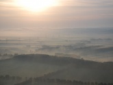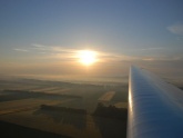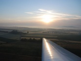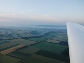 Ich springe noch schnell zu Günter in die KUB und wir starten als letztes der 8 Motorflugzeug in die Morgendämmerung. Die Optik ist heuer komplett anders als in den letzten Jahren, weil die ganze Landschaft durch die Feuchtigkeit und Nebelschwaden in ein ganz eigenes Licht gehüllt ist. Die Luftaufnahmen stammen übrigens von meinem Falken-Checkflug für Roman Weigl um 03:22 UTC (!), also rund 1 Stunde nach Sonnenaufgang.