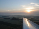 Ich möchte natürlich wieder im Segelflugzeug starten und bereite mit Sepp Leisser unseren Twin-Astir vor. Unser Timing ist absolut perfekt und wir stehen 15 Minuten vor Beginn der bürgerlichen Morgendämmerung am Start für die 07. Pünktlich zum Sonnenaufgang stehen aber auch die anderen 7 Flugzeuge startbereit hinter unserem Schleppzug: Pfister/Gschwandtner im Falken, Fälbl/Pokorny (CBR), Lahmer (AHM), Dobrovic (DTA), Cozowicz/Zsak (DYU), Schöffmann (DKT) und Janda (DND). Nur die COG und ALJ müssen mangels muntergewordener Piloten (Binder bzw. Tawfik) leider doch am Boden blieben.