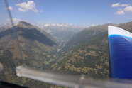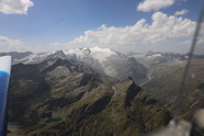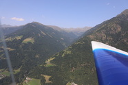 Nach knapp 3 Stunden Flugzeit hab ich dann in Lienz den roten Flugplatzkater, welcher der Betriebsleiterin Gesellschaft geleistet hat gestreichelt, kurz ein paar Webcams auf der Route geprüft und bin dann nach Zell losgeflogen. Den kurzen Weg nach Norden übers Hochtor (Glockner Hochalpenstrasse) hab ich verworfen, ich wollte dem Falken ein bissl Steigzeit auf der längeren Route über den Felbertauern einräumen, geplant (notwendig) waren um die 10.000 ft. für die Querung. Ich steige Richtung Nord-Westen, da taucht der Großglockner rechts von mir auf, beeindruckend. Obgleich der Falke eh recht brav steigt, nehme ich einen 5 Meter Bart mit ein paar Kreisen gerne mit, weiter geht's Heading Nord-West, Matrei in Osttirol liegt schon vor mir.