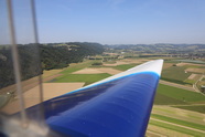 Na was soll's Takeoff Stockerau, Heading Richtung Zeltweg. Nach etwa 20 Minuten Flugzeit beginnt meine Fitnessuhr zu revoltieren, ich möge gefälligst nicht solange herumsitzen und mich bewegen. Wenn das so ist, knapp vorm Schneeberg wieder umgedreht, zurück nach Stockerau geflogen, ausgestiegen, zum Betriebsgebäude gegangen und die Bordpapiere vom Falken geholt (sie durften jetzt doch auch mitfliegen), das Fitnessprogramm gestoppt und wieder losgeflogen.