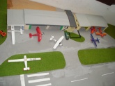 | daraus wurde dann nix. Jedoch hatte der ehemalige Privatpilot Walter, soviel gefallen an der Aufgabe gefunden, dass er halt einfach mal so, sozusagen für's Wohnzimmer, Stockerau nachgebaut hat. Ein kleiner Zwischenbericht von den Bauarbeiten: Iss nicht alles perfekt, ist ja auch noch nicht fertig. Immer wieder taucht er bei uns auf, nimmt Maß, fotographiert, schnuppert Flugplatzluft und zumeist hilft er uns dann einige Stunden bei diversen Tätigkeiten. Verschwindet wieder auf einige Wochen, sucht passende Modelle, bastelt und fährt wieder nach Stockerau... Ps.: versucht mal einen T4 Bus in Grün in 1:72 zu bekommen, oder eine 150iger, Katana oder Pits....... |