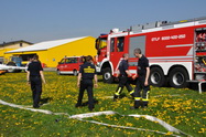 | eine großangelegte Feuerwehrübung am Bisamberg. Eine für uns etwas kurzfristig geplante Feuerwehrübung hat uns am Freitag der Vorwoche zu erheblichem Militärverkehr verholfen. Übungsannahme war, dass am Bisamberg ein Waldbrand wüte und dieser wütende Waldbrand aus der Luft zu bekämpfen sei. Wir als Flugplatz, waren insoweit mit im Spiel, als bei uns die Flugzeuge und Helicpoter mit Sprit betankt wurden, die Pilatus Porter auch mit Löschwasser. Eingesetzt waren 4 Helicopter (S-70, B-212, SA-313, EC135) und 3 Pilatus Porter. Die Herausforderung für uns lag darin, die vielen, für unseren Flugplatz doch recht großen Luftfahrzeuge, so zu parken und aufzustellen, dass der Flugbetrieb nebenher im Rahmen der gesetzlichen Auflagen (Sicherheitsbereiche) durchgeführt werden konnte. Gregor und ich haben am Vortag die Bereiche der "sicheren Aufstellung" ermittelt, in Pläne eingetragen und in der Natur vermarkt. So war es zumindest in dieser Richtung am nächsten Tag ein Kinderspiel die Situatiuon im Griff zu behalten. Lediglich den Feldweg neben dem Flugfeld mussten wir zeitweise absperren. Horst, Gregor, Friedrich und Schorsch haben perfekte Arbeit geleistet und soweit ich es beurteilen kann, war der Flugplatz Stockerau ein verlässlicher und sicherer Übungspartner für die Feuerwehr, das Innenministerium und das Bundesheer.. Genug der Worte, hier die Bilder....... Link: Feuerwehr Stockerau Link: 1.Staffel Langenlebarn Link: Niedserösterreiuch heute vom 30.04.2010 |