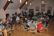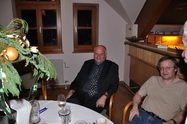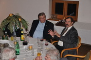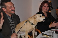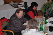 | für uns war's ja, recht ordentlich, wie immer könnte man schon sagen. Das Schloss Hausleiten bot ein angenehm entspanntes Ambiente, der Gruber Wirt aus Stockerau hat auch wieder sehr gut aufgekocht. Perfekt, wirklich, aber, und jetzt muss ich Euch als Wolfgang, der Private, nicht Vorstand oder Vereinsvertreter, noch was dazu sagen. Die Feier ist für uns schon selbstverständlich geworden, das Buffet muss nicht nur vom Feinsten sein, nein es muss auch Späterkommenden noch gerecht werden. Nicht so wie vor zwei Jahren, als einige Mitglieder praktisch fast verhungern mussten, als sie etwas später kamen.... Ich glaube nicht, dass für die Behindertenhilfe, für welche wir eine Weihnachtssammlung veranstaltet haben, eine annähernd feudale Weihnachtsfeier möglich ist. Stimmt die leben ja von unseren Spenden und mit den neppichen 700 Euros die bei der Sammelaktion im Schwein gelandet sind, können sie allen ihren Anvertrauten wahrscheinlich gerademal eine Wurstsemmel und einige Vanillekipfer zur Weihnachtsfeier schenken. Danke, Kollegen .... Die Feier kostet jedes Jahr mehr, voriges Jahr waren wir schon weit über 4000 Euro, es beschämt mich, dass bei der Spendenaktion gerade mal 7 Hunderter zusammengekommen sind. Nein, es soll hier kein übertrieben schlechtes Gewissen gemacht werden, wer nicht spenden will, soll's bleiben lassen, stimmt schon. Ich wollte Euch aber das Ergebniss der Sammelaktion bekanntgeben und danke allen, welche das Schwein mit Scheinen und Münzen gefüttert haben. Ersuche aber auch alle, die vergessen haben im Schwein einen 10er oder Zwanziger zu versenken, dies nachzuholen. Das Schwein steht ab Montag wieder am Flugplatz und wartet auf Euch.... Ach, so, eins hätt ich fast vergessen, wir könnten hier wirklich und direkt die berühmte Weihnachtsfreude bereiten. Am Ende des Beitrages findet ihr einen Link zur Behindertenhilfe, dort könnt Ihr nachlesen was mit unserer Spende gemacht wird.... Fritz war leider krank und lag im Bett, Heinz Bartosch hat ihn bei der Festrede würdig vertreten ... Auch der Fröhliche Hund war von der Rede wieder angetan und hat halt, da er nicht applaudieren kann, gebellt. Hannes hat die erlösenden Worte "das Buffet ist eröffnet gesprochen...." Der Stammtisch der "Altmitglieder", Mitglieder aus der Flugplatzgründerzeit, welche dank unserem Franz Havliczek immer persönlich eingeladen werden... Auch zwei Vereinsgründer waren wieder anwesend, Hähnel Fritz und Uhl Fritz mit Gattin Hilda Link: Behindertenhilfe Korneuburg |