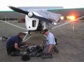 Kerry Skyring ist eines unserer Mitglieder, ein stiller Bursche, welcher nicht viel aufhebens um seine Person macht. Soweit ich weiß arbeitet er bei Radio FM4 und in seiner Freizeit hilft er dem Mühli beim Kitfoxbasteln. Dort hab ich Ihn eigentlich erst genauer kennengelernt. Kerry ist ein passionierter Spornradflieger und hat in seiner Heimat Australien eine Auster stehen. Es ist noch nicht lange her, da hatte er ein Motorproblem, aber lest selbst: All ended well but the AAAA rally at Echuca gave Kerry and Kim Skyring some forced landing practice. Like so many other years the Friday before the national fly-in saw VH-KAL, my J5B Auster, pointing its nose south, keen to join its mates at the national fly-in. The adventure began with an early morning flight down the coast from Hervey Bay to Caloundra where Tiger Moth instructor Wayne Sandford-Smith was booked for my biennial flight review. “I want to practice forced landings” I told Smithy. Did I know something? With the BFR completed, my sister Linda, who hadn’t heard about the legendary luxury of Auster aircraft, joined as passenger for the trip. We departed Caloundra at 1300 for a 3 hour leg to our first stop at Moree. The route took us over the Brisbane River valley to Toowoomba and then across the Darling Downs tracking for Moree with the Gipsy running smoothly and the weather fine. Just over two hours into the flight the tiny town of Yelarbon is where it should be off the port wing and I’m looking forward to a beer in Moree. A minute later the Gipsy stopped suddenly and, I was convinced, terminally. There was significant shaking and just a little power available but it was clear Moree would not be our destination on this day. So it was checks, radio call and start looking for a paddock. We were at 3,500 feet with trees ahead but a left turn brought two possible fields into sight, one unimproved and the other ploughed with stubble. The drought has left even ploughed fields as hard as concrete so rather than risk logs and stump holes I went for the stubble and lined up along the furrows. Over the fence with 50 knots and full flap was followed by a touch down with a rough but short roll and no damage. Good paddock planes these Austers. There was no visible external damage to the engine but oil was dripping from the exhaust and there were only two compressions. Three weeks later I was back in Vienna but LAME Rob Scott, my daughter Kim and friends Hilton McCleod and Grahame Smith arrived at the paddock with tools and a replacement engine. On pulling the heads from VH-KAL they found the exhaust valve on NO. 4 had broken, holed a piston and damaged two cylinders. After a careful check for metal they replaced all four cylinders, and heads, installed new rings and exhaust valves. After just one and a half days work Kim flew KAL out of the paddock and back to Sunbury. Heartfelt thanks to Grahame and Hilton, Kim and Rob. Following in father’s wheel tracks? My daughter Kim and her partner Rob Scott did make it to Echuca, flying up from Penfield in their Auster J1B. On the return journey on Sunday afternoon, descending to stay clear of Melbourne airspace, the Gipsy began coughing and running rough. They suspected carburettor ice and with the “bushranger” country west of Romsey ahead of them decided to head for clearer country. What looked like a private strip was spotted near Kilmore and the Auster put down without problem. It turned out to be the first landing on a strip under construction. On landing the engine immediately decided to start running smoothly again. A few days later Rob gave it a good check over and it was flown back to Penfield. Kim called CASA to warn them they would receive incident reports involving off-field landings by two Austers both flown by pilots named K. Skyring. They were amused. |