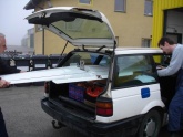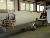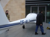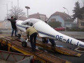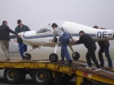 | Man bekommt nicht alle Tage die Gelegenheit die Fliegerei zu präsentieren, noch schwieriger wird's, wenn man diese Präsentation in einem ansprechenden Rahmen durchführen will. Das neue Kompetenzzentrum der Raika Korneuburg bot uns die Gelegenheit, im gediegenen Rahmen der neuen Bank, diesen Plan in die Tat umzusetzen. Wir erhielten das Angebot eine 4wöchige Ausstellung zu belegen. Direkt in der Eingangshalle soll ein Flugzeug ausgestellt werden und mit entsprechenden Infomaterialien (Floder, Kurzvideo am Infoscreen und Vorträgen) die Fliegerei von Ihrer besten Seite gezeigt werden. Vorgestern war's soweit, der seit Tagen vorbereitete Transport der Lima Juliet nach Korneuburg begann. Neun Uhr morgens waren alle da, auch jene, welche eigentlich fliegen gehen wollten, aber, ob der Witterung (keine Sicht in Sicht) nicht in die Luft kamen. Gemeinsam war die ALJ schnell auf den Tieflader geschoben. Die Flügel hatten wir schon Tags davor verladen, alle Teile waren selbstverständlich sauberst geputzt und poliert worden, um den Flieger von seiner besten Seite zu zeigen. Nach einer problemlosen Fahrt, Ankunft in Korneuburg. So verladen würd ich Euch mit dem Flieger quer durch Österreich fahren, stabil und völlig sicher stand die Katana am Transporter. Lustig zu sehen waren die erstaunten Gesichter der Menschen am Strassenrand, wenn ein zerlegtes Motorflugzeug an Ihnen vorbeifährt. Wie einer Katana eigen, war das Flugzeug schnell aufgebaut, positioniert und mit dem Putzfetzen wieder hochglanzgefinished.... Wir freuen uns schon auf den, in den nächsten Tagen folgenden, Infoabend, das Pressefrühstück und die weiteren Veranstaltungen mit unserer Hausbank. Übrigens, die heurige Generalversammlung wird auch an dieser Adresse abgehalten... Ps.: besten Dank an alle Helfer, im Speziellen an Herrn Schneps und Robert Haller, welche den Tieflader verliehen und pilotiert haben und natürlich unserem Instandhaltungshilfsbetrieb, welcher das Flugzeug professionell betreut. Franz ist wie immer eher g'schamig... Link: Raika Korneuburg |