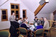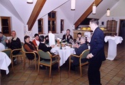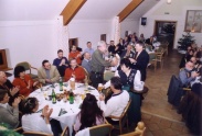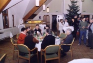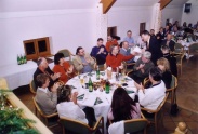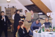 | Hausleiten LOHL 18:30 loc. Die ersten Gäste kommen über den weihnachtlich geschmückten Aufgang in den Festsaal, der sich bis 19:30 mit mehr als 100 Mitgliedern und deren Begleitern füllt. Wir haben eine Menge Überraschungen vorbereitet die dann, im Rahen einer kurzen Ansprache an die „Betroffenen“ verteilt werden. Ob dem Sagl Herbert den ASK, (Active Sound Killer), ein kleines Radio damit er sich im Garten einen Geräuschpegel schaffen kann der über dem Motorenlärm unserer Flieger liegt, ob ein großer Ytongstein als symbolischer Grundstein für einen Hangar in Altlichtenwart, ob eine Tanzanleitung für unseren Reithofer Pepi, das Christkind hat für einige einfach das schon lange gewünschte mitgebracht. Besonders gefreut hat es mich, zwar mit einjähriger Verspätung aber doch, Frau Hermine Pestl zu ihrem 80. Geburtstag gratulieren zu können. Die perfekt von Hannes Bartosch organisierte Veranstaltung mit wunderbarem Buffet und ausreichend Flüssigkeit zum Nachspülen hat dann bis in die ersten Morgenstunden Gelegenheit gegeben alle Gschichtl’n und Abenteuer der abgelaufenen Saison loszuwerden und gleich auch die Pläne für das neue Jahr zu schmieden. Wie immer hat das Fluchtachterl so gegen 01:00 begonnen und war bei einigen um 02:00 noch nicht ausgetrunken. Von mir der Wunsch ans Christkind, bring allen von uns Gesundheit, Lebensfreude und schöne Flugtage. Den Rest werden wir wohl selbst organisieren müssen. Frohe Weihnachten, Prosit 2006 Fritz |