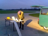 | Pepi Riegler war am kämpfen, große Alukiste links, nein doch eher oben, na gut, ist nicht so toll, stellen wir sie besser rechts unten hin. Einem „Tüftler“ wie dem Pepi gelingt’s aber zu guter letzt doch, eine optimale Lösung zu finden und diese dann mit großem handwerklichen Geschick umzusetzen. Auch hier leider nur sehr bescheidene Bilder.... Ps.: die große Alukiste steht jetzt doch wieder links.... |