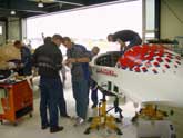 | Die CBR ist ja eigentlich schon ein Methusalem, Werknummer 10. Bei 6000 Stunden erreichen die Katanas ihr Ablaufdatum, da steht eine große Inspektion an. Gegenwärtig arbeiten Diamond und Austrocontrol an einem Lifetimeextensionprogramm für die Flieger. Nachdem die CBR die erste Katana mit so vielen Stunden ist, spielen wir ein wenig Versuchskaninchen. Das Flugzeug steht in Wr. Neustadt und wird auf Herz und Nieren überprüft, unzugängliche Stellen werden inspiziert, und fast alles was zerlegbar scheint, auseinandergenommen. Es werden auch Teile auseinandergenommen welche eigentlich nicht zerlegbar sind, wie auf den Bildern erkennbar, wird gerade der Bandspant ausgebaut... Das Ergebnis der Kontrolle sollte eine Laufzeiterweiterung um 3000 Stunden sein und soweit ich das heute mitgehört habe, auch ein überarbeitetes "Maintenance Manual", welches auf den Erfahrungen der letzten Jahre aufbaut und Ersparnisse bei der Wartung bringen sollte. Für alle CBR Fans: das Flugzeug steht voraussichtlich in etwa 3 Wochen wieder zur Verfügung. Danke im Voraus an den Behördenvertreter welcher hier sehr bemüht daran arbeitet den Flieger wieder in die Luft zu bekommen. Übrigens, die CBR haben wir jetzt seit etwa 10 Jahren in unserer Flotte und haben ziemlich genau 5000 Stunden mit dem Ding geflogen..... OE-COG bekommt einen neuen Motor.. na, wenn wir schon beim Geld ausgeben sind: unsere COG bekommt gerade wieder ein neues Triebwerk. Voraussichtlich Ende dieser Woche wird sie wieder zur Verfügung stehen. |