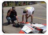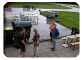 | Freitag 18.06.2004, die Vorbereitungen: Anfänglich strahlender Sonnenschein, danach strömender Regen, was aber der Stimmung (überhaupt zur späteren Stunde) nix zu leide tat, wie die Fotos beweisen. Nach erfolgreichem Test der Bierabfüllanlage, durch Commander Hansel,W. König, Ch. Lenz und dem Webmaster begann dann der gemütliche Teil des Tages. Anm: des Webmasters: Einige Bilder vom Commander Breiner unterliegen strenger Zensur und liegen beim Webmaster auf. Samstag, 19.06.2004: Alle haben gebangt, der Wetterfrosch hat ab etwa 14:00 Uhr Regenschauer angesagt. Aber glücklicherweise eine Fehlprognose. Zumindest in unserem Raum nicht mehr als ein paar Tröpferl. (Zur Ehrenrettung des Meteorologen sei gesagt, dass es in Hollabrunn ganz schön "gewaschelt" hat....) Einige hundert Besucher kamen zu uns um wieder einmal die Flieger aus der Nähe zu sehen, möglicherweise auch einzusteigen und zu fragen, was Sie immer schon über die Fliegerei wissen wollten. Ein gemütlicher Tag welcher perfekt organisiert war und mit vielen Helfern auch zu allen Zeiten optimale Betreuung der Besucher gewährleistet hat. Vom Parkplatzteam, welches für die reibungslose Zu- und Abfahrt zum Fest gesorgt hat, bis hin zum Platzsprecher, welcher zwischen den Kommentaren immer wieder Zeit für ein Scherzerl fand. Ziemlich stressfreier Tag für alle Beteiligten. Großen Dank an alle Helfer welche hier zur Stelle waren, um wie immer ehrenamtlich, mitzuwirken. Ein kurzer Rückblick in Bildern mit einigen Worten anbei. Die Modellflieger aus Sierndorf und Arthur Frenslich's Freunde vom Jetclub waren wieder da. Vom Segler bis zum turbinengetriebenen Jet war alles vertreten. Wenn man diese Bilder sieht kann man kaum etwas anderes denken, als dass die Jungs perfekt sind... Helmut Hausader hat uns wieder einmal gezeigt was mit einem Motorflugzeug alles möglich ist. Katana Formation: