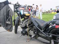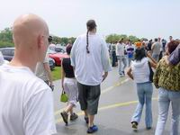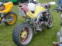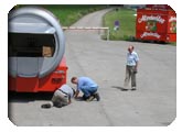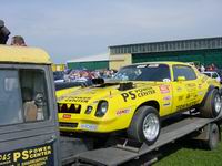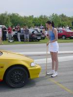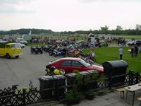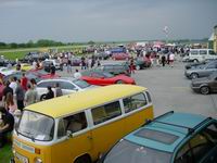 | Das Negative zuerst, der Veranstalter hatte wenig Glück mit dem Wetter und seiner internen Festorganisation. Daraus haben sich viele kleine Probleme ergeben, welche in Verbindung mit den Zuschauermassen ein wenig eskalierten. Leider wurde aus dem geplanten Raceday ein An- und Abreisetag für die Besucher. Die Verpflegungspartie konnte am Abend gut lachen, ihr Kassaladl dürfte Abends nicht mehr zugegangen sein, denn getrunken und gefuttert wurde teilweise schon aus Frust über den immer wieder verschobenen Rennbeginn. Aber der Reihe nach: zuerst überrennen die Besucher- und Teilnehmermengen den Veranstalter, ich habe gehört, dass die Anreise von Stockerau Mitte bis zum Flugplatz etwa eine Stunde gedauert hat. Unglaubliche Mengen Interessierter sind auf den Beinen um am Flugplatz das Rennen zu sehen. Letztendlich ist die Strasse von Stockerau Richtung Flugplatz beiderseits, vom Ortsende Stockerau bis zum Flugplatz, komplett verparkt. Immerhin ca. zwei mal 1,5 Kilometer von geparkten Autos (so geschätzte 600 Autos). Die Weinlingerschottergrube leider aufgrund der Regengüsse recht "gatschig" aber auch ganz gut verparkt. Unsere Zufahrtsstrasse verparkt und der Ostteil des Flugplatzes auch in 5 Zweierreihen mit Autos vollgestopft. Ich schätze (mit den angemeldeten ca. 250 Teilnehmern) nochmals etwa 600 Autos. Der erste Regenschauer (TSGR laut Forecast) überrascht alle. Auch die empfindliche Elektronik der Zeitnehmung. Trocknung der Komponenten mittels Heißluftpistole, dann wird die Piste trockengefahren, dabei zerreißen die Autos die für die Zeitnehmung nötigen Kabel -- weitere Verschiebung des Rennens. Die Zuseher beginnen jetzt „ein wenig unruhig“ zu werden. Letztendlich startet das Rennen etwa gegen 14:00, immer noch mit Sorgen bei der Zeitnehmung. Aber was soll's, Gas geben kann man auch ohne eine genaue Zeitnehmung zu haben. Einfach Auto gegen Auto aufstellen und losfahren. Teilweise recht eindrucksvolle Leistungen werden geboten. Nicht nur die Beschleunigungen sind sehenswert, der Sound der Autos und Bikes ist manchmal recht imposant. Leider sind viele von den Superschlitten nicht gefahren, aber Bilder gib's trotzdem für Euch: | ||||||||||||||