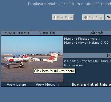 | Allen Airplanespottern sicherlich ein Begriff. Die Spotter sind die Jungs welche mit Fotoapparat und Fernglas bewaffnet die Flughäfen unsicher machen und sich tierisch freuen, wenn sie ein, Ihnen noch unbekanntes Flugzeug fotografieren. Bemerkenswert auf jeden Fall das Bilderl eines gewissen Roberto Benetti aus Malta vom Juli 2003. Probiert mal aus, was man da noch so findet -- es gibt auch eine Suche nach Kennzeichen.... Anm. d. Webmasters: Das Orginalbild könnt Ihr betrachten indem Ihr auf das Bild oben klickt. |