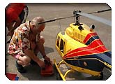 Herr Schöffmann, zeigte uns seine Konstruktion eines Einmannhubschraubers. Gegenläufige Rotoren, daher kein Heckrotor, Steuerung der Flugrichtung über Gewichtsverlagerung.