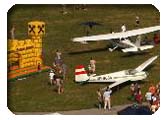 | Einsam und allein saßen die restlichen 12 in der Scheune am Berg, als sie ein Notruf von Fliegerisches Resümee des heutigen Tages: - Rekordabstieg von Pepi Reithofer: 2800 m vernichtet in 15 min (nahendes Gewitter!) mit anschließender Formationslandung mit Höllerer und Bachmayer- wieder rund 200 km von Christian Vohryzka 216 km) und Rudi Frenslich (260 km) |