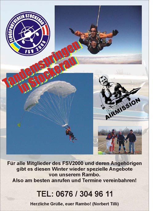 | > Stockerau, 22.11.2002, 21:30 Uhr P.F. Winteraktion: Tandemspringen mit Tilli Beitrag von: 'airmission' |