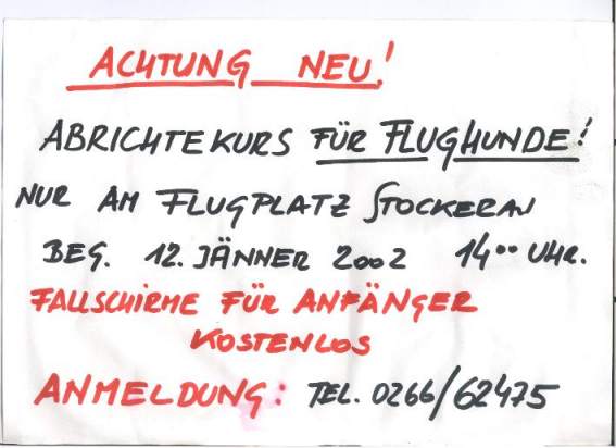 | Gestern hat uns Erich Sobotka, ein, in Stockerau am Hundeabrichteplatz, aufgehängtes Plakat gebracht. Seht selbst.....