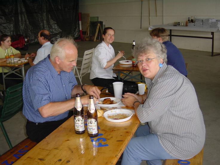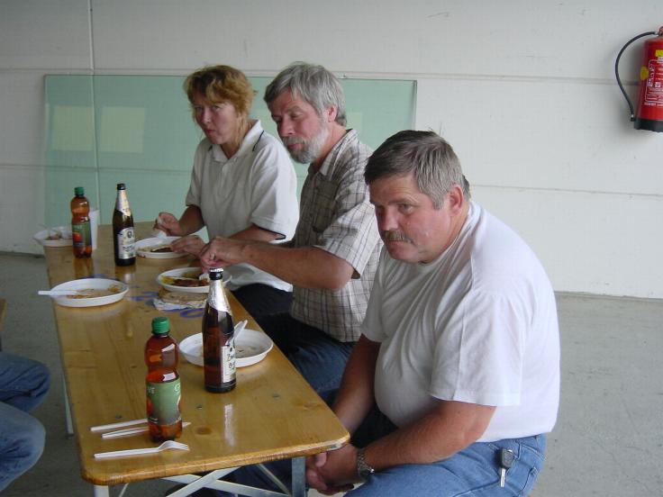 Im Werkstättenhangar waren Heurigengarnituren aufgestellt und statt schrauben war mampfen am Programm.....