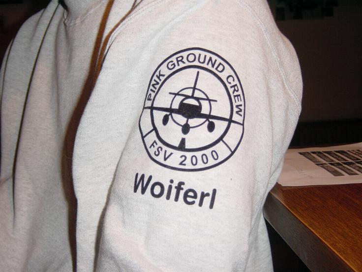 Dass noch das ganze Vorfeld mit unseren Flugzeugen voll war, hat niemanden wirklich gestört. Spät am Abend konnten wir uns aber dennoch zum Einräumen entschließen. Als kleines Dankeschön an die Boogiehelfer gab's Sweater mit Spezialaufdruck. Leider sind einige unserer Mitglieder schon vorher verschwunden. Aber andere haben dann doch noch einige Zeit angehalten und so gab's etwa um Mitternacht ein Sittin am Apron East....