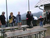 | Die Teilnehmer: Franz Bachmayer, Rudi Frenslich, Gitti Gibisch, Evi Glassner, Franz Havlicek, Ferdi Höllerer, Fritz Janach, Herbert Kaschowitz, Günter Mayer, Karl Müller, Franz Neubauer, Josef Reithofer, Leo Schindler, Erich Schüssler Die Vorbereitungen: Nachdem wir etwa um Weihnachten beschlossen haben, dass nach mehrjähriger Pause wieder ein Segelfluglager stattfinden sollte, haben wir im Frühjahr mit den Vorbereitungen begonnen. Neben den Arbeiten, die für alle sichtbar waren (Hängerbau, Pickerl für die Hänger, Flieger zerlegen usw.) waren bei mehreren Besprechungen noch viele Kleinigkeiten vor dem Segelfluglager zu organisieren (welcher Flugplatz? zu welcher Zeit? welche Flugzeuge nehmen wir mit? wer fährt mit? wer zieht die Hänger? usw.). In den letzten Wochen vor der Abreise wurde es mit dem Umbau des Astir-Anhängers zwar recht eng, aber letztendlich wurde er doch soweit fertig, dass wir das Pickerl bekommen haben. Es fehlt zwar noch etwas Lack und einige Kleinigkeiten aber mit etwas Improvisationstalent von Günter Mayer wurde der Flieger dann doch noch reisefertig. Der Ka-8-Hänger war sowieso verkehrstauglich und der Twin-Hänger bekam beim 2. Anlauf und nach dem Kauf von neuen Reifen auch das Pickerl. Über den 2. Astir-Hänger, von dem der Oberteil auf der Autobahn abhanden gekommen ist, möchte ich an dieser Stelle nicht weiter schreiben. Karl Müller hat sich dankenswerterweise bereiterklärt, dass er die Leitung des Fluglagers übernimmt. Er hat jedem, der einen Flieger transportiert, eine (schwer leserliche) Checkliste in die Hand gedrückt und es hat sich bewährt, dass derjenige für die gesamte Ausrüstung (Fallschirme, Papiere, Batterie-Ladegerät, Bezüge, usw.) und auch während der übrigen Zeit für das Flugzeug verantwortlich ist. Ebenso hat jeder Teilnehmer eine (ebenfalls schwer leserliche) Liste mit allen Handy-Nummern bekommen. Am Abend vor der Abreise kam noch etwas Hektik auf, da einige Hängerpapiere nicht auffindbar waren, was aber nach einem Telefongespräch mit Wolfgang Gockert geklärt werden konnte. Die Anreise: Das Fahren mit dem Twin-Anhänger ist ein Erlebnis für sich. Das Ding ist groß (ca. 10m lang), schwer (1300kg mit Flieger) und unübersichtlich. Ab 80 km/h beginnt er zu pendeln, bei 85 km/h nimmt man automatisch die Arme von den Sitzlehnen und fummelt auch nicht mehr am Radio herum und ab 90 km/h wird’s lebensgefährlich. Überholende LKW’s, schnell fahrenden PKW’s und Längsrillen bringen zusätzliche Unruhe in die Fuhre. Am besten sind aber Autobusse, die wegen der höheren Geschwindigkeit zu einem Adrenalinausstoß wie bei einem Looping führen. Mit einem leichteren Auto als meinem (1400kg Leergewicht) ist der Twin-Hänger wahrscheinlich nicht mehr zu bändigen. Die Sache sieht vermutlich weniger wild aus, wenn man einem Geländewagen, einem LKW oder einer Lokomotive vorspannt. Auf Dauer sind aber mehr als 80 km/h nicht fahrbar, was bei fast 450 km zur Geduldsprobe wird. Der Tempomat erleichtert die Sache wesentlich, da man sonst automatisch immer schneller wird und es hilft etwas, wenn man sich kürzere Abschnitte als Ziel setzt (z.B. die nächste CD bis zum Ende hören). Auf der ganzen Strecke bis Nötsch und retour (ca. 900 km) habe ich nur ein Wohnwagengespann und einige Radfahrer überholt. Das Rangieren und das Fahren in engen Ortschaften ist erstaunlicherweise nicht so schlimm wie man beim Anblick der Hängers vermutet (Sattelschlepper kommen ja auch fast überall hin). Der C- und E-Führerschein schaden aber beim Fahren mit dem Twin-Hänger sicher nicht. Der Flugplatz: Der Flugplatz Nötsch liegt ca. 15 km westlich von Villach und ca. 10km nordwestlich vom Dreiländereck Österreich-Italien-Slowenien direkt am Fuß des Dobratsch. Die Graspiste ist offiziell 25m breit und 710m lang, tatsächlich sind jedoch mindestens 1000m verfügbar. In den 2 Hangars sind außer den 2 Schleppmaschinen (Remorqueur und Super-Dimona) fast nur Segelflugzeuge und Motorsegler untergebracht. Neben dem Betriebsleiter ist auch unter der Woche ständig ein Schlepp-Pilot am Platz. Bei größerem Andrang am Segelflugstart wird zusätzlich ein zweiter Schlepp-Pilot und ein Starthelfer organisiert. Geschleppt wird aus Lärmschutzgründen fast ausschließlich Richtung Osten (bis zu 10kt Rückenwind), da in dieser Richtung ein langes Waldstück überflogen wird. Ansonsten wird der Betrieb recht locker abgewickelt und bei der Landung kann man sich die Pistenrichtung praktisch selbst aussuchen. Jedem Segelflieger werden bei einem Einweisungsflug die Platzrunde (getrennt für Segel- und Motorflugzeuge), die Ausklinkstellen und die Hausbärte in der Nähe des Flugplatzes gezeigt. Die Thermikverhältnisse im Gebirge sind ungleich besser als in Stockerau, aber die Turbulenzen und Abwindgebiete sind auch wesentlich gefährlicher. Die Außenlandemöglichkeiten sind im Gailtal Richtung Westen bis zum Lesachtal gut, aber im Osten ist bis zum Flugplatz ein 12km langes Waldstück zu überfliegen. Es sind zwar einige Wiesen darin, die für die Ka-8 ausreichend groß sind, aber ob sie auch für die Plastikflieger reichen möchte ich lieber nicht ausprobieren. Für Streckenflieger dürfte der Platz recht günstig sein, was an den Leistungen der einheimischen Piloten ersichtlich ist (heuer bereits mehrere Flüge über 700km). Während der ganzen 2 Wochen haben wir außer den Schleppmaschinen nur 3 Motorflieger (und keinen einzigen Hubschrauber) am Platz gesehen. Das Wetter: Bis auf 2 Tage war immer ein Segelflugbetrieb möglich und an einigen Tagen war sogar Streckenflugwetter. An diesen Tagen war schon in der Früh viel Hektik am Segelflugstart und beim Auslösen der Thermik um ca. 10:00 lokal haben 10 bis 12 Segelflugzeuge startbereit auf die Schleppmaschinen gewartet. Der Süden dürfte während der 2 Wochen wetterbegünstigt gewesen sein, da der Wetterbericht für den Rest von Österreich immer wesentlich schlechter war. Besonders eindrucksvoll war ein 