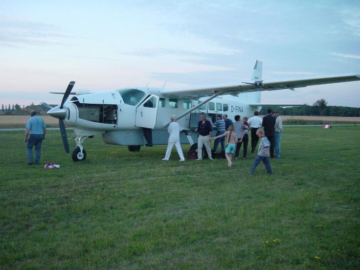 | Am Abend ist Robert mit der neuen Caravan in Stockerau gelandet. Riiiiieeeesenkoffer, nicht der Robert, die Caravan. Einige unsere IFR/CPL Mitglieder werden darauf ein Rating fliegen. |