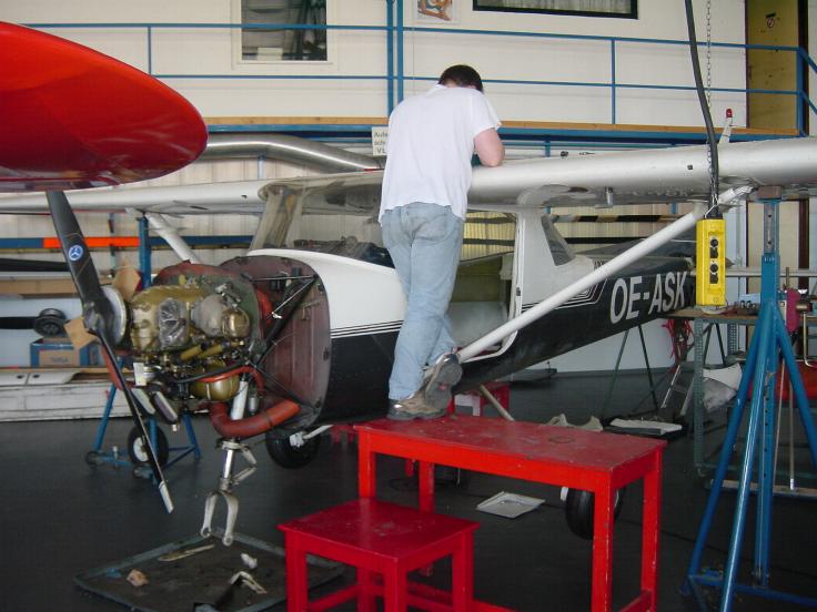 Da dieser Schaden als sog. Betriebsschaden zu werten ist, haben wir aus der Kaskoversicherung keinen Anspruch auf Entschädigung. Das plötzlich, unerwartet von außen mechanisch einwirkende Ereignis ist hier nicht gegeben. "Lufteinwirkung" wurde in mehreren Prozessen bereits ausdrücklich als Betriebsschaden eingestuft. An den lachenden Gesichtern ist zu erkennen, dass aber möglicherweise ein kleiner Beitrag in Kulanz geleistet wird.  Herrn Ardey, im Bild ganz rechts, konnte ich übrigens zu einem Vortrag/ Diskussion zum Thema Flugsicherheit im Verein gewinnen. Termin im Herbst, wird noch verlautbart. Herr Ardey ist nicht "nur" Versicherungssachverständiger, er ist zudem Flugunfalluntersucher, selbst Pilot und war lange Zeit im Verein tätig. Beim Besuch in Krems habe ich mir auch die ASK angesehen und für Euch fotografiert. Der Flieger steht dort zu einer 1000 Stunden Kontrolle.  Dass ein Zylinder defekt ist, braucht man ja fast schon nicht mehr erwähnen. Kaputte Zylinder sind etwa gleich häufig wie rote Strassenampeln. Aber, da der Zylinder ja eh schon 300 Betriebsstunden, von 1800 zulässigen, erreicht hat, ist er quasi schon ein Methusalem...........  Die Innenraumverkleidungen der ASK. Herbert Sagl (scho wieder der Herbert), fährt am Donnerstag und Freitag nach Krems um auch die ASK innen zu "verleisern". Durch das Aufkleben von Dämmstoffen wird Herbert das Flugzeug innen Lärmreduzieren. Danke Herbert.  Übrigens es war am Mittwoch herrliches Wetter zum Fliegen...................  regards go
