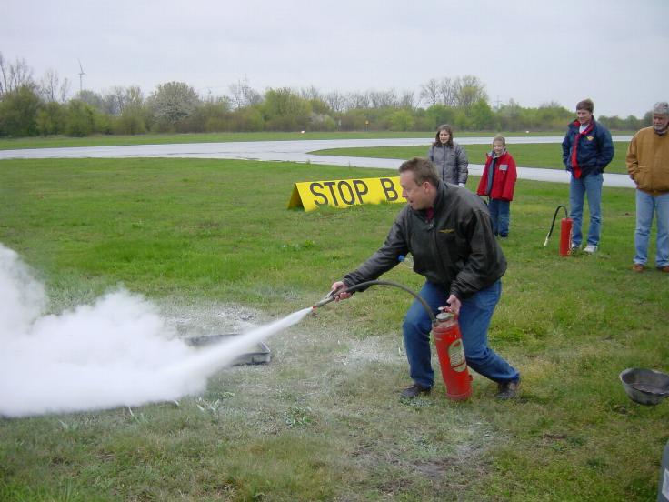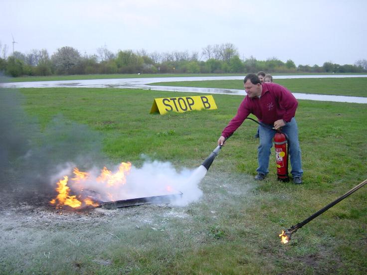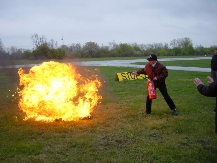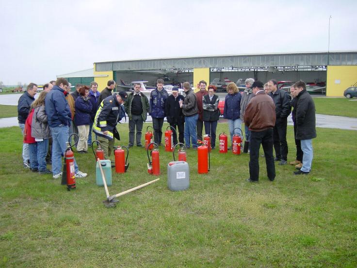 Nach einleitenden Worten und Bildern von Stockerauer Unfällen durch mich ergriff Thomas Grgic das Wort und es folgte eine Wiederholung der wichtigsten, die Flugplätze betreffenden Bestimmungen des LFG und der LVR. Nach der Mittagspause habe ich dann über die ZFBO und ZVF mit speziellem Bezug auf unseren Flugplatz ein wenig etwas erzält. Die neue FIUG und ZSRV waren der Abschluß. Christian Mädel (Versicherungsmakler http://www.cmv.at) sprach zum Abschluß über Haftungsfragen den Betriebsleiter betreffend, die Schlußfolgerung unsere BL's besser zu versichern liegt auf der Hand. Abschluß der Schulung: Die Feuerwehr. Kommandant Bauer (FF Stockerau) und Gottfried Helfer (FF Sierndorf und Feuerwehrbedarf Händler) haben referiert. anschließend der Praxisteil -- Feuerlöschübung