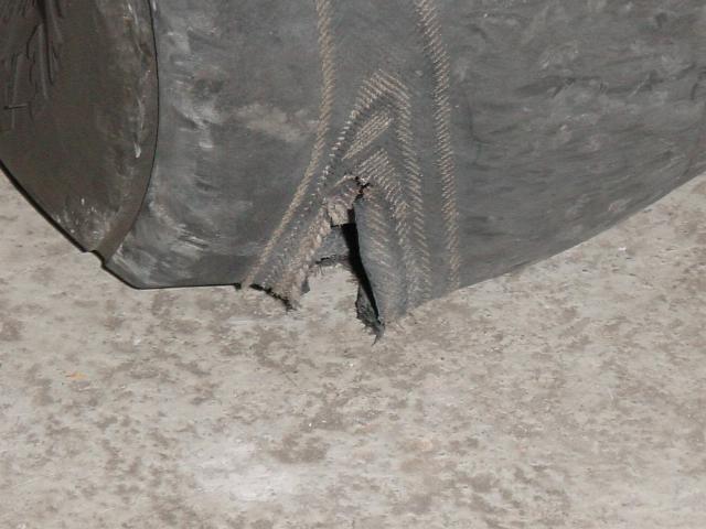| Entweder hat der Pilot einen schlampigen Vorflugcheck gemacht und den bereits beschädigten Reifen nicht gesehen, oder aber er hat es geschafft mit drei Landungen den Reifen zu zerstören. PS.: als wir den Flieger vom Hangar in die Werft schieben wollten, ist der Reifen geplatzt. Zum Glück nicht auf der Piste bei der Landung ..................... Info: Reifen bei welchen die erste Gewebeschicht sichtbar ist, sind ein Grund, den Flieger zu grounden. |