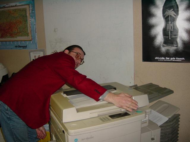 Am Mittwoch haben wir die OE-DKT aus der Werft geholt. Wolfgang hat mit seiner 170er der Shuttlepilot gespielt. Nach Hause ging's dann in enger Formation. Donnerstags wurde unser Rundschreiben fertig. Beim Kopieren und "Einsackl'n" kam gerade der "Kopiererpapa Herbert" vorbei. "na geht a eh ??" seine obligate Frage sobald er seinen Schützling sieht. Plötzlich ein leichtes Knarren - sofort wird das Gerät hervorgezogen und untersucht - so fertig, kopiert wieder geräuschlos. Zu später Stunde in der Werkstatt hat Fritz Uhl seine Dias gezeigt. |