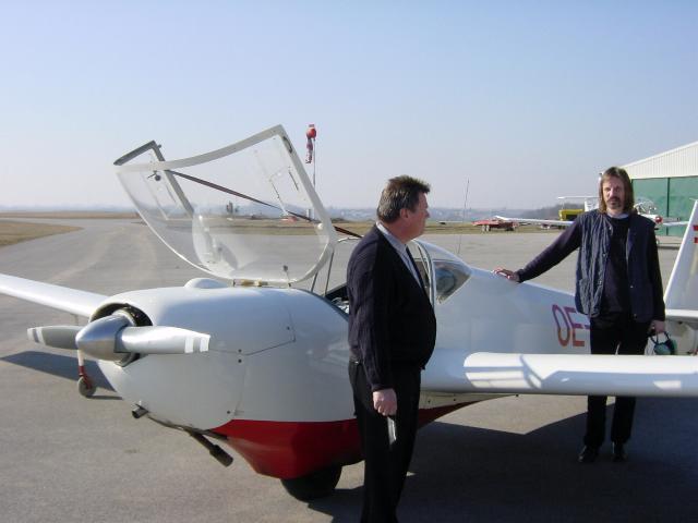 Erstens: Flugzeugtruppeninspektor Niko Laus von der niederösterreichischen Landesluftfahrtbehörde - Insiderschmäh - begutachtet die frisch geputzte OE-DTA. Unser Andi hat ganze Arbeit geleistet. Dafür dass der Flieger baujahrmäßig nicht mehr ganz taufrisch ist, glänzt er super. Liebe Kollegen vergesst nicht den Flieger sauber zu halten, der momentane Blitzblankzustand soll nicht nur 3 Tage bestehen. Anzumerken ist noch, dass wir Sauberkeit kaufen könnten. Wer bereit ist dafür einen oder zwei Schilling am Minutenpreis extra zu bezahlen - bitte melden unter fliegen@fsv2000.at, wer dies nicht will -- Flugzeug selbst sauber halten. Dankschreiben aller "ich schau mich gerne in den Spiegel" Menschen an franz.neubauer@utanet.at |