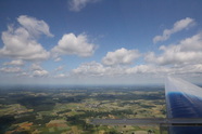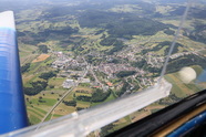 Dani holt mich am Morgen ab und bringt mich zum Flugplatz, volltanken, zahlen, Wetter heute okay, naja, der Wind ist nach wie vor eher im 20-30 Knoten Bereich. Das Wald- und Mühlviertel ist heute ein Segelfliegerparadies, Thermik zum Abwinken, ein wenig schwierig zu fliegen, sehr turbulent, höhehalten, Speed nicht in den gelben Bereich kommen lassen, es bockt und beutelt wie verrückt.