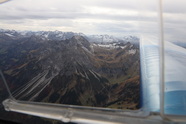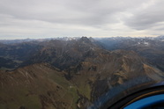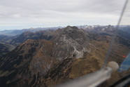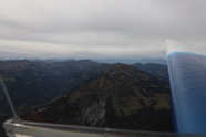 Ab nach Füssen, Falkenfüttern mit Mogas, blaue Falkenschuhe anziehen und ab gehts, Kurs West, prächtig. Ja, in Hohenems seh ich das herannahende Wetter schon deutlich stehen und das passt genau, ich dreh vorm Wetter um und fliege ihm davon. Wahnsinnsgegend hier, ein wirklich toller Teil unseres Landes, ich mein, Triebwerksausfall wünsch ich mir da keinen, die Landemöglichkeiten beschränken sich unter das berühmte Minimum, es gibt da zeitweise garnix was auch nur im entferntesten land-bar aussieht. Deutlicher Wind aus Südwest, also fliege ich an den Südhängen entlang, ich bin fast 10.000 ft und nicht wirklich über den Bergrücken, ein Saufen in den engen Tälern kann ich da garnet brauchen.