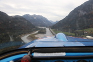 Ein toller Anflug, wir kommen vom Norden in das Tal, fliegen, fast wie bei uns, Hochspannungsleitungen entlang, dann südlich der Festung Rosskopf vorbei, Umfliegen die Ortschaften im Lechtal und da isses, das Finale 04, okay, die Halle ist doch recht nahe, wir sitzen ein paar Meter hinter der Schwelle. Rückrollen Takeoff 22, im Westen im Lechtal umgedreht, erneuter Anflug 04, jetzt an der Halle vorbei, kleine Kurskorrektur im shortest Final, zweite Landung 04 erledigt.